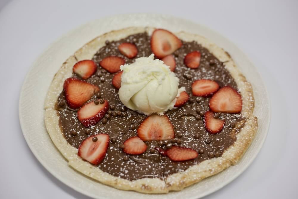 Small Pizza base topped with Nutella, Strawberries, Vanilla bean gelato & finished with icing sugar
