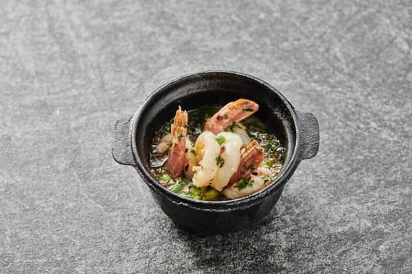 Sizzling King prawns with chilli, garlic, parsley & shallots